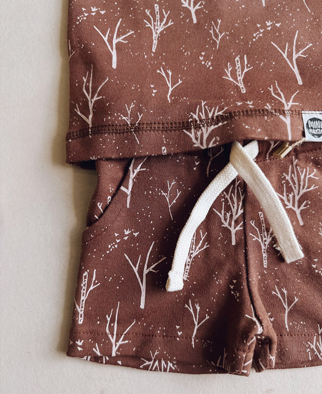 Conjunto composto de 1 Regata + 1 Bermuda Cargo combinando, na mesma estampa Twig.