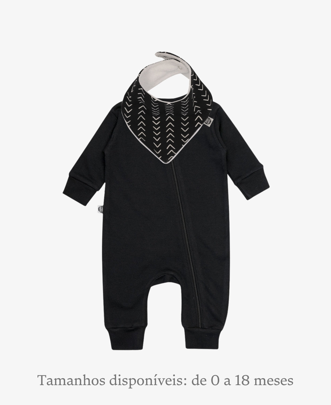 Conjunto Bebê Macacão + Babador | Fishbone e Preto