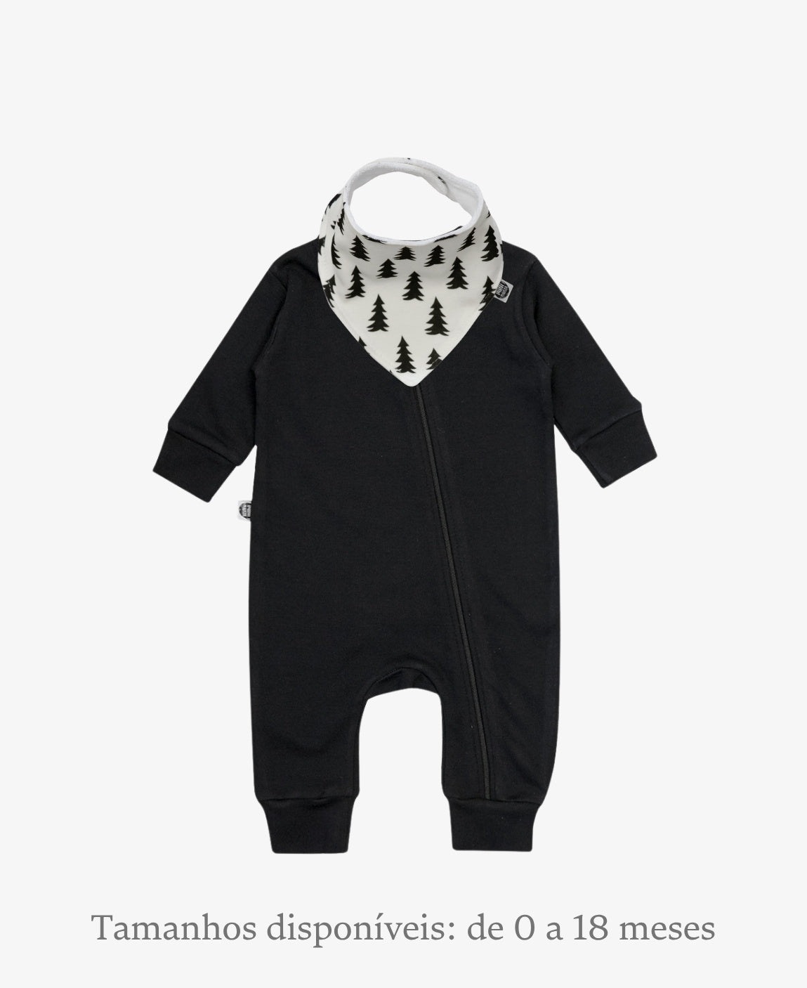 Conjunto Bebê Macacão + Babador | Pinheiros e Preto