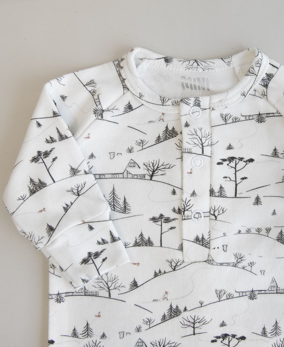 - Detalhes: Modelo Macacão Raglan, com botões frontal e botões entrepernas. Touca Nó, e Luvinhas.