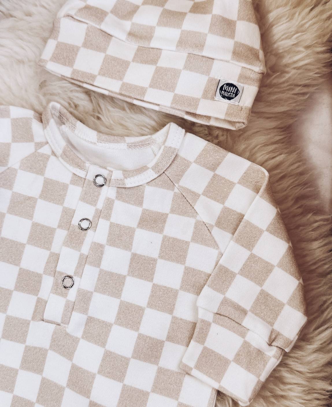 O Kit Saída de Maternidade Racer Beige traz o equilíbrio perfeito entre conforto, estilo minimalista e praticidade, em uma paleta suave de bege e off-white, com estampa xadrez moderna e delicada — símbolo de elegância e aconchego.
