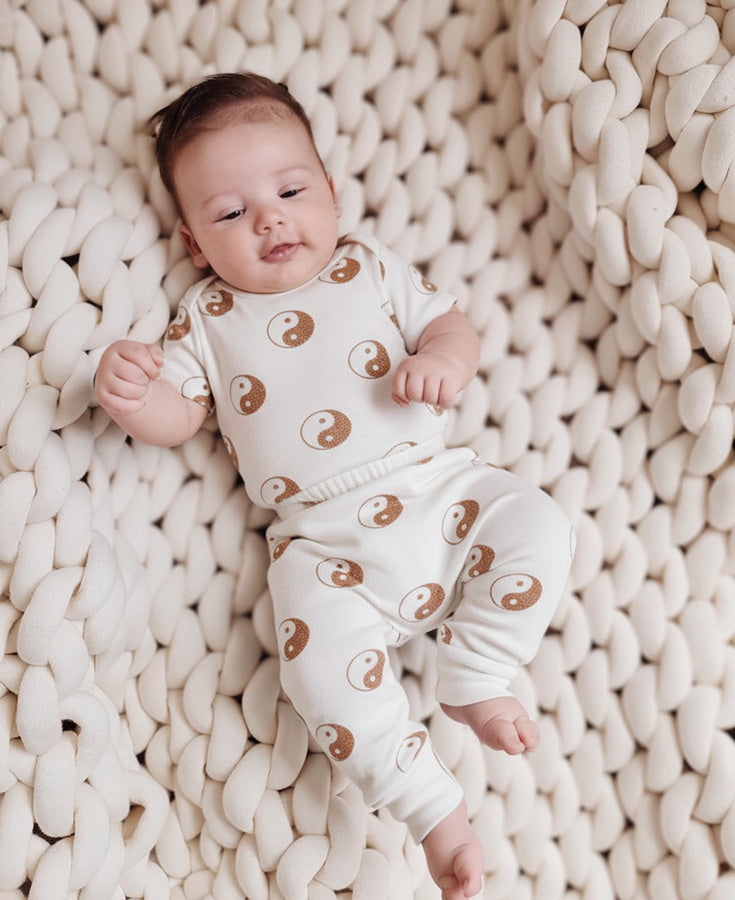 Com um fundo off-white suave e os símbolos Yin Yang em tom caramelo terroso, essa padronagem transmite serenidade e conexão. É uma estampa exclusiva da MiniMalista Baby, criada para inspirar harmonia e acolhimento, além de se integrar perfeitamente à estética escandinava da marca.