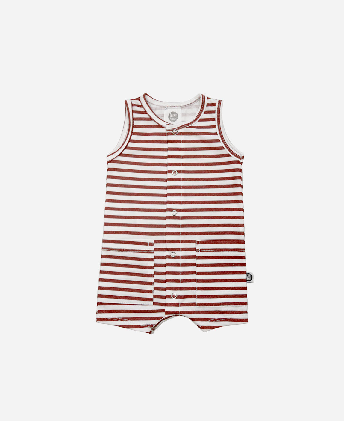 Macaquinho de Verão Botões Regata Unissex | Listrinhas Vermelho